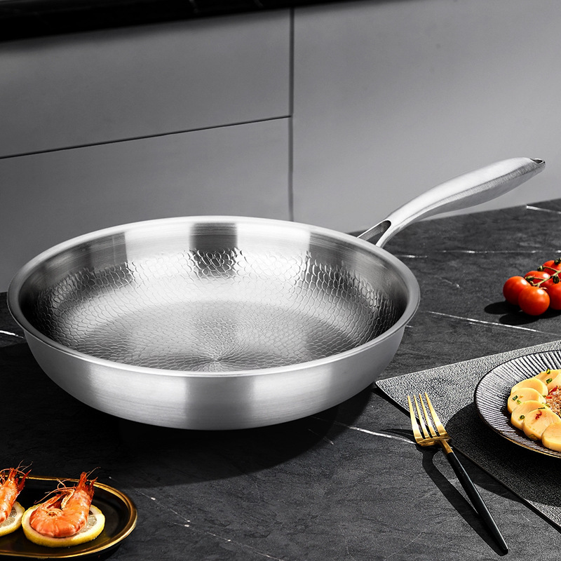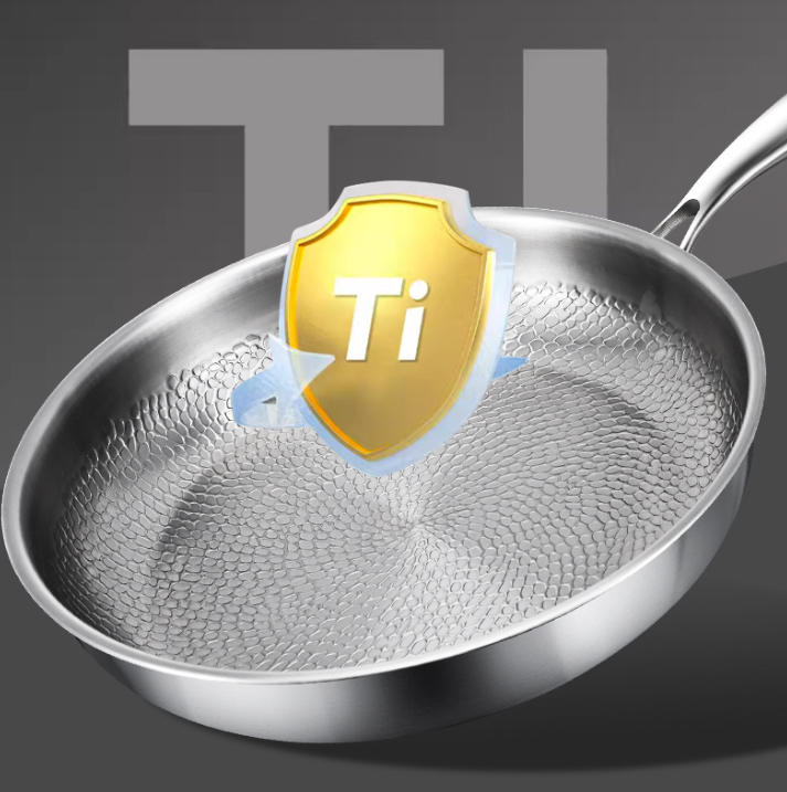 Hammered titanium pan with non-stick coating, thickened magnetic bottom, prevents bulging, suitable for all cooktops